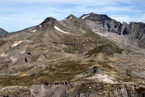 Scharte P 2640 auf P 2979 und Brennkogel (Mitte). Rechts erhebt sich