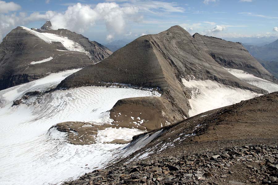 (Schutt und feines Geröll) zu enden. Die Gipfelpyramide ist nach