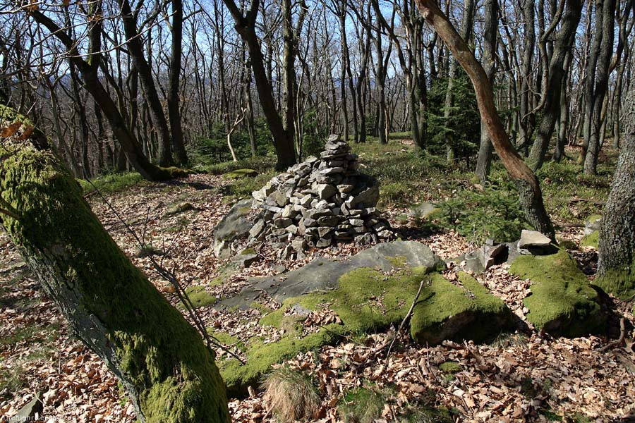 unauffällige Gipfelkuppe mitten im verwunschenen Laubwald, immerhin von