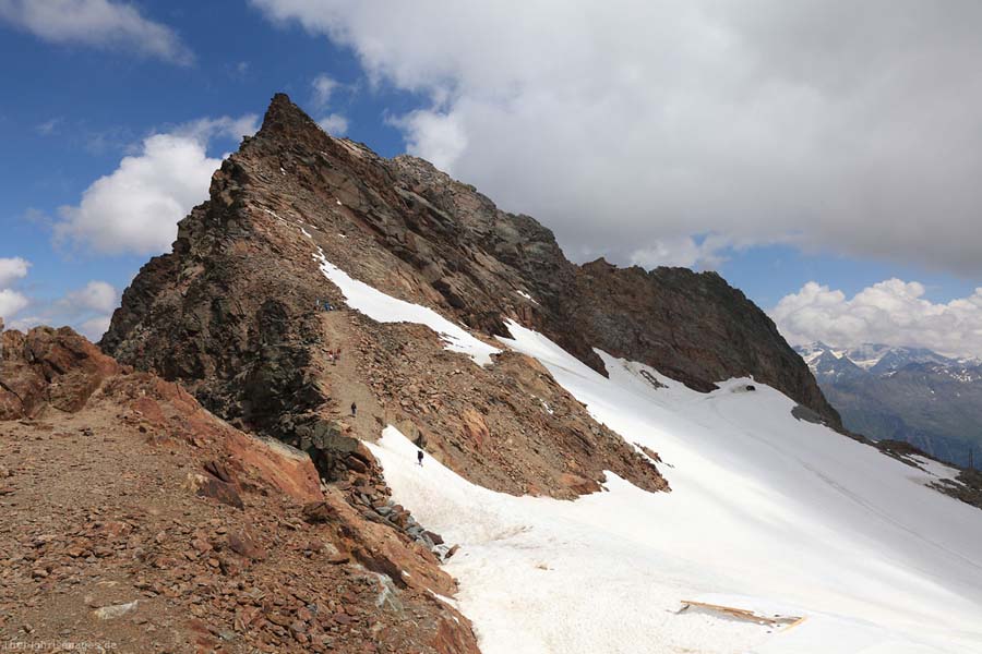 Vorgipfel im Südwesten mit der Wildspitze. Rechts im Vordergrund steht