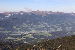 im Westen, die Seetaler Alpen. Im Tal liegt Obdach.