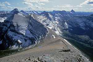 Schutthänge des Flinsch Peak hinüber zum aussichtsreichen