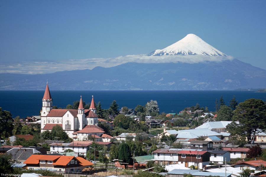 Osorno vom großen Lago Llanquihué aus gesehen.