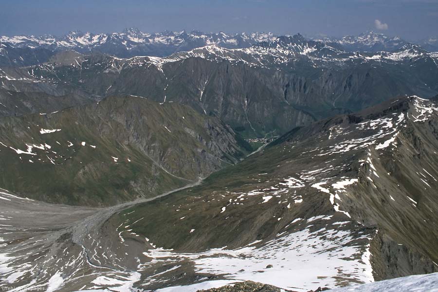 im Westen: Mitte rechts erhebt sich dominierend das Fluchthorn,