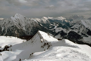 Rücken im sicheren Abstand vor den SO-Abhängen der Abendspitze.