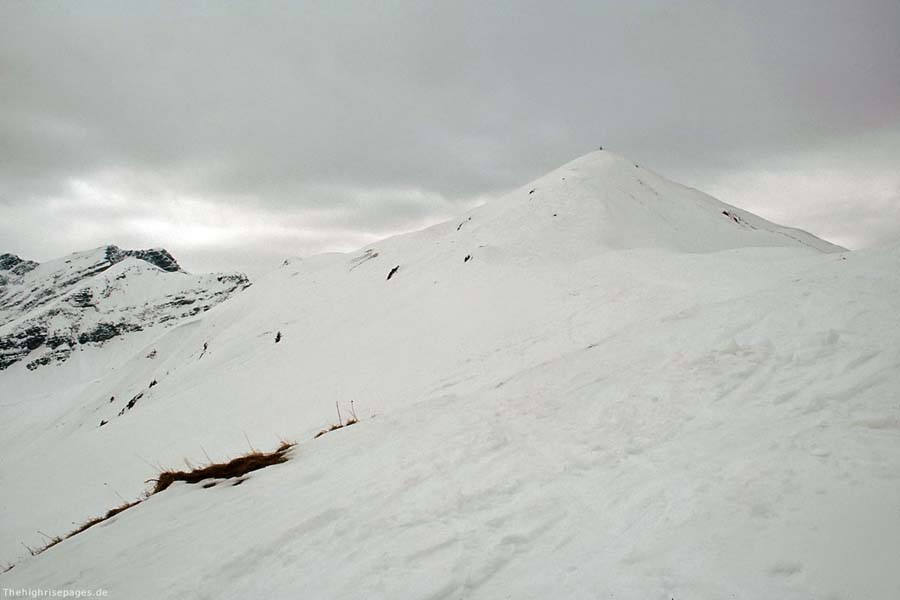 Abendspitze. Vom Waldrand dann über den freien Nordostrücken zur