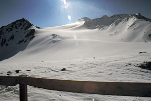 Schispuren. Er bietet allerdings einen völlig gletscherfreien Zu- bzw.