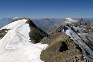 Südgipfel, rechts im Hintergrund das Gletscherdach der Les Diablerets.