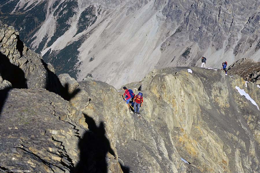 ausgesetzten Felsgrat deuten Schwierigkeiten über II an (0:30)