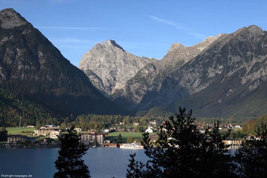 Sonnjoch-Nordostwand vom Achenseeufer aus.