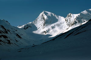 steile Firnflanke (hoch über dem Gaisbergtal) ausweichen. Nach der