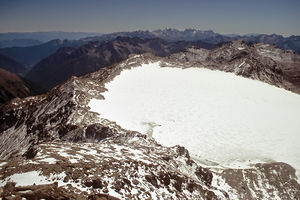 Adamello. Rechts erhebt sich die Gletscherflanke des