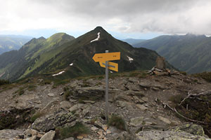 (Wegtafel, etwa 1960m) und weiter über einen sanft ansteigenden Grasrücken