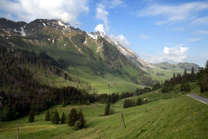 „Brienzer Rothorn“) über sanft ansteigende Almweiden, später Wald, höher