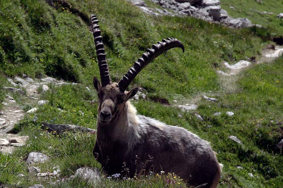 Parkplatz in aller Ruhe ein Steinbock entgegen gewandert kommen.