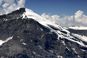 (3592m), davor der Glacier d'entre Deux Ris. Links unten die